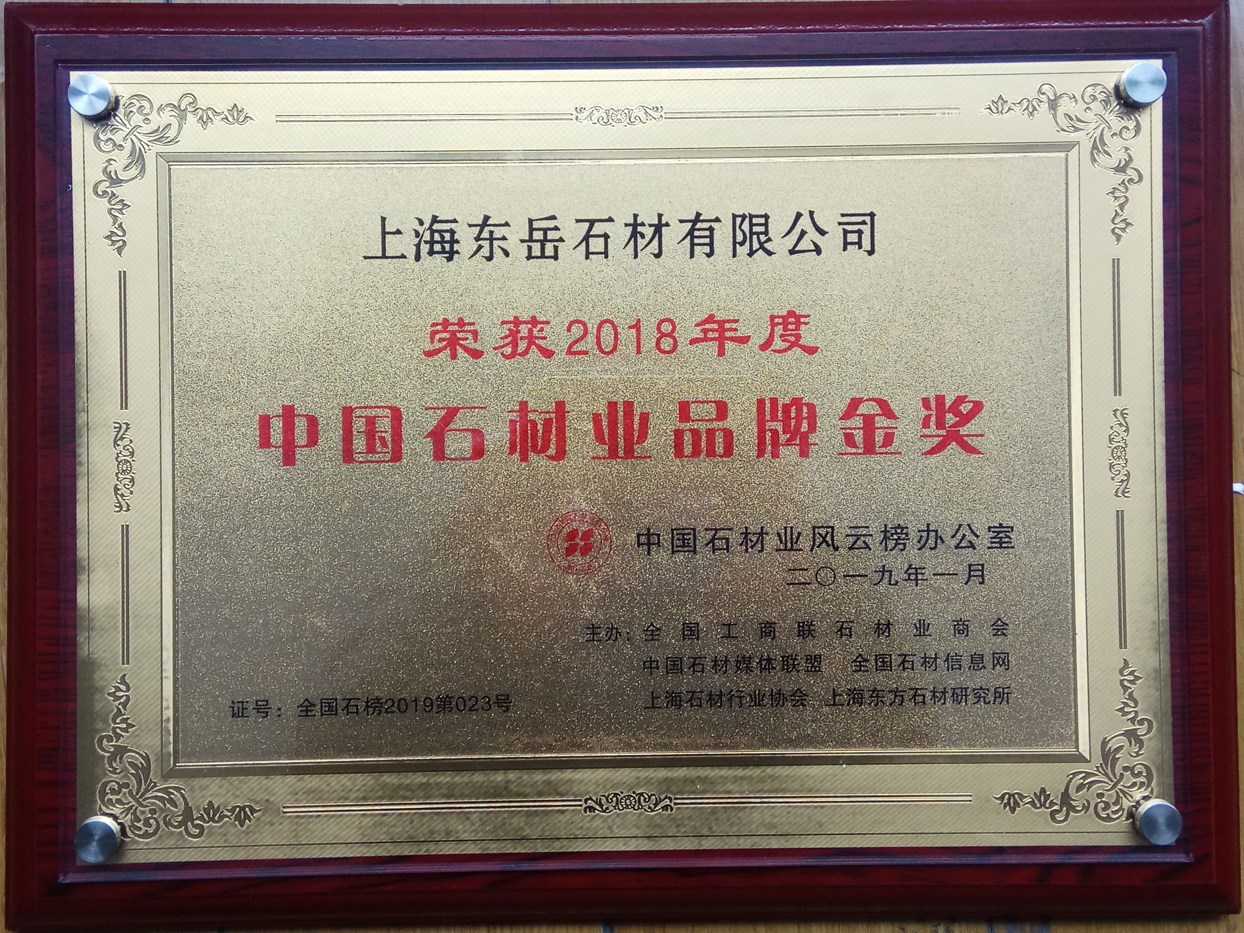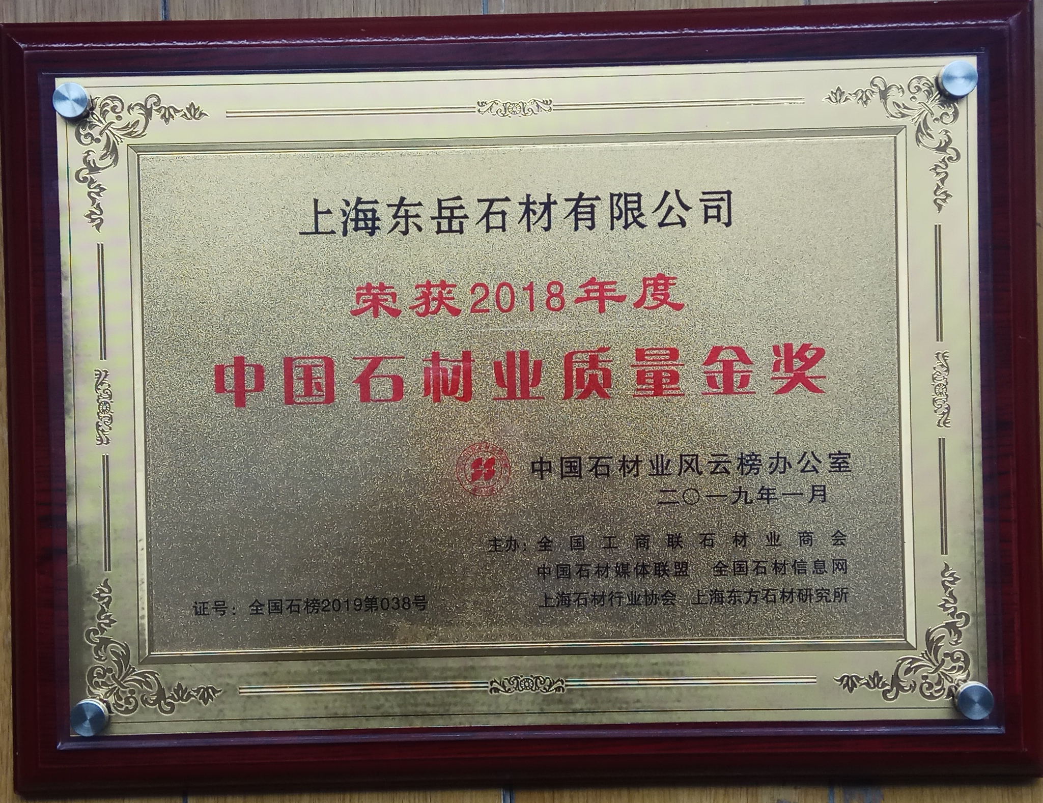 上海東岳石材有限公司榮獲2018年度石材行業(yè)品牌金獎(jiǎng)、2018年度石材行業(yè)質(zhì)量金獎(jiǎng)、2018年度石材業(yè)誠信經(jīng)營先進(jìn)單位,這是全體東岳人共同努力、共同奮斗的結(jié)果,也是業(yè)界對我們的肯定,希望公司全體同仁繼續(xù)加油!