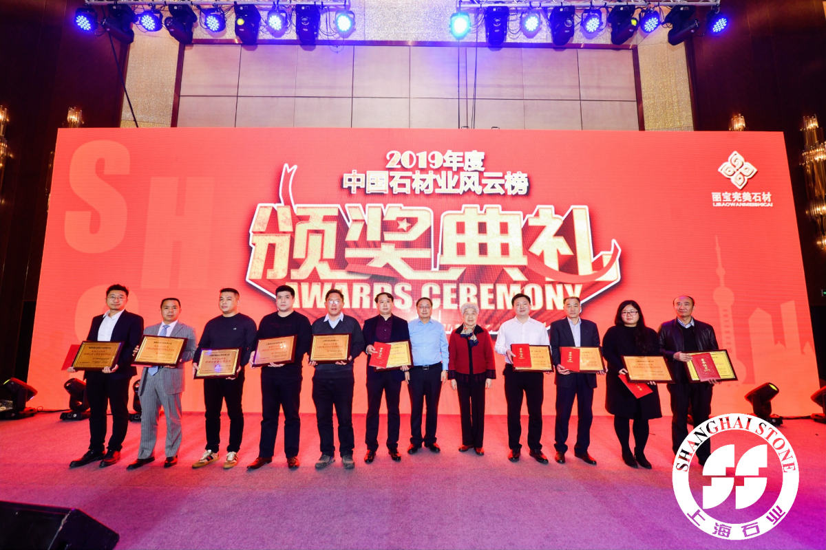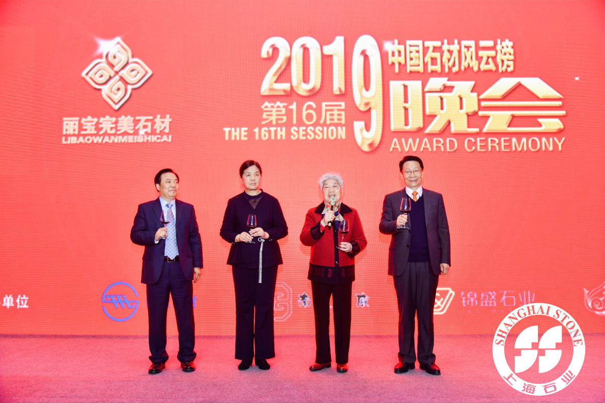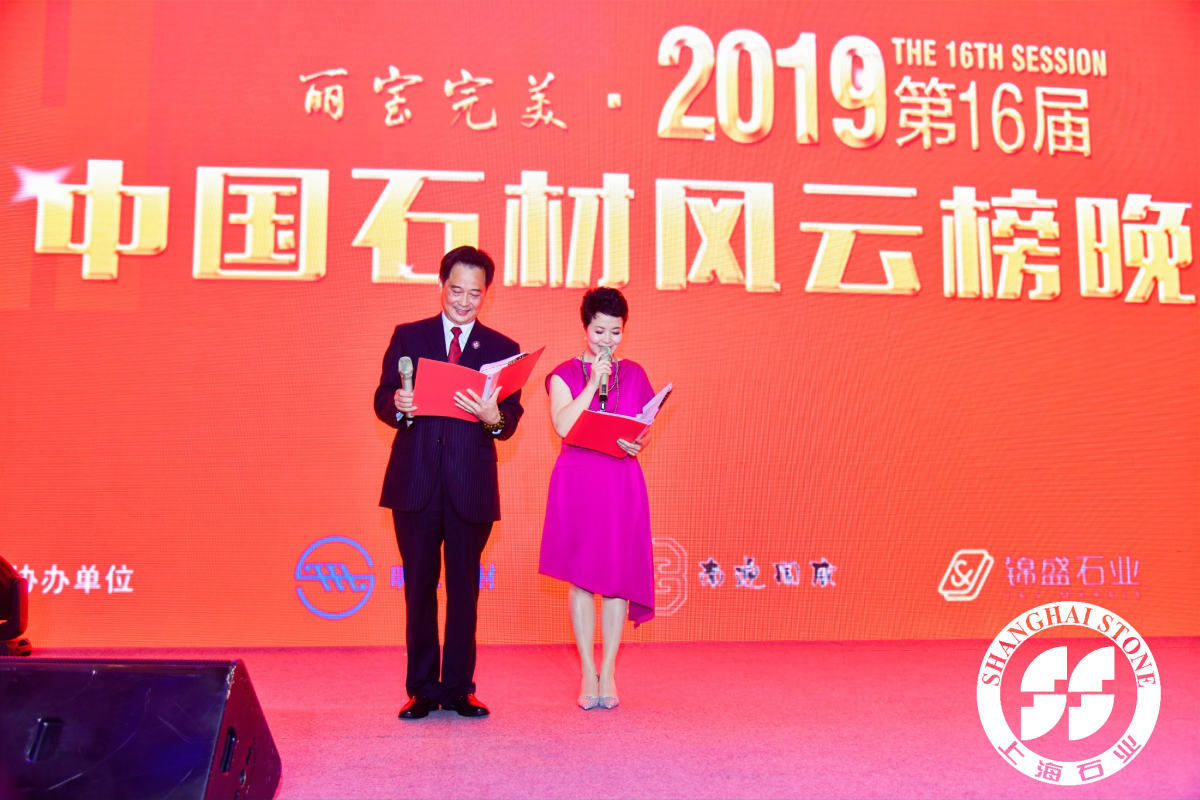 | 由中國石材媒體聯(lián)盟、全國石材信息網(wǎng)、上海石材行業(yè)協(xié)會、上海(國際)石材礦山聯(lián)合會、上海東方石材研究所等聯(lián)合發(fā)起主辦,上海明珠石材有限公司、南通國威石材有限公司、泉州東繼順錦盛石業(yè)有限公司、福建鳳凰山裝飾工程有限公司協(xié)辦的2019年度中國石材業(yè)(第十六屆)風云榜頒獎晚會于2019年12月28日晚上在虹橋綠地鉑瑞酒店隆重舉行,約500位嘉賓出席并見證了這次石材行業(yè)的盛會。