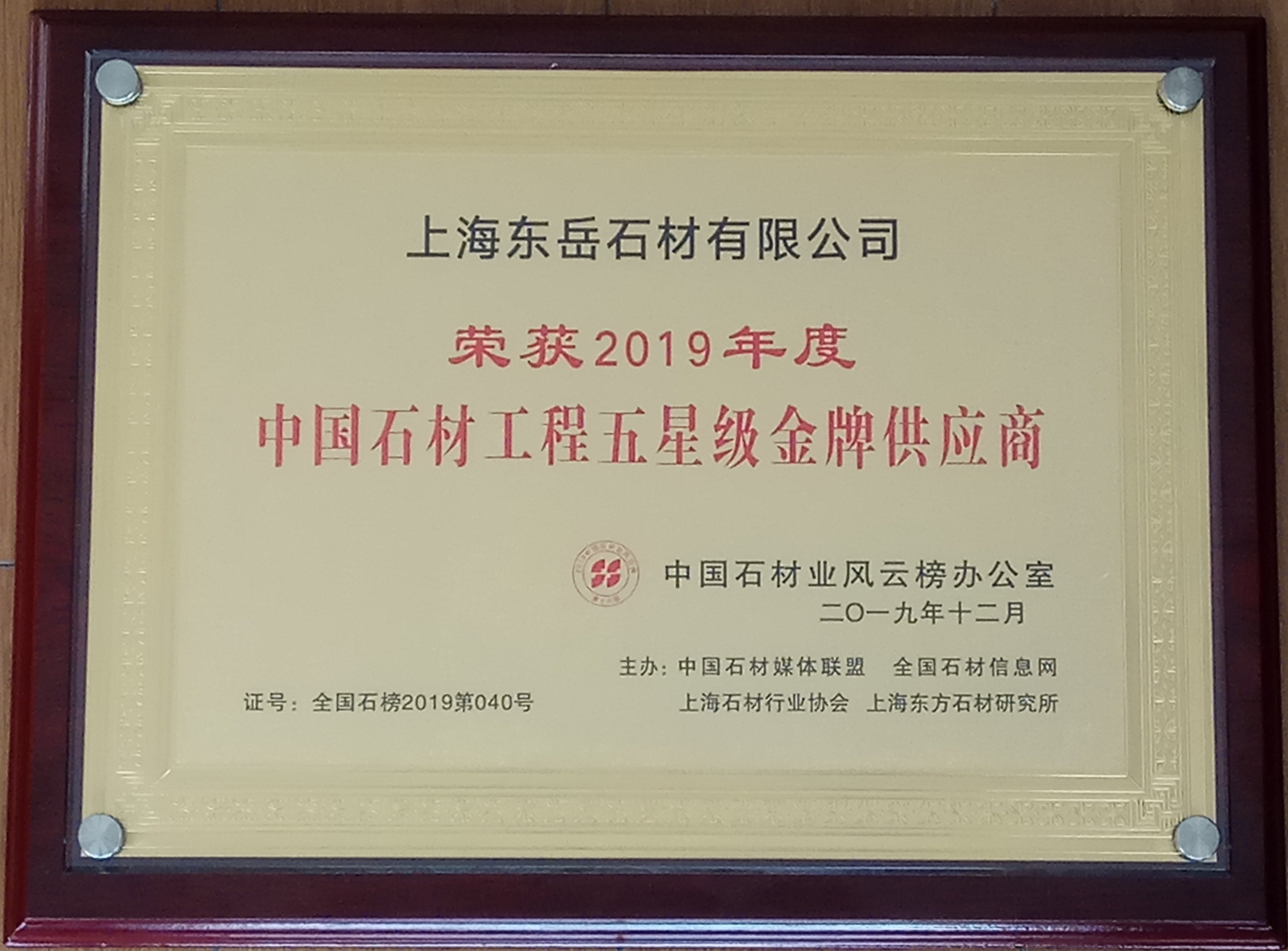 上海東岳石材有限公司榮獲“工程五星級金牌供應商”稱號,這是石材行業(yè)對東岳工程質(zhì)量的認可和鼓勵,希望公司全體同仁繼續(xù)加油,爭創(chuàng)更好業(yè)績。